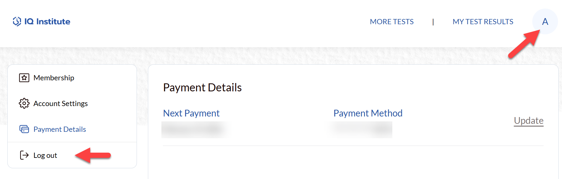 Within your IQ Institute account, go to your profile avatar on the top right and click on “Log Out” from the left navigation menu.