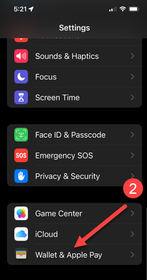Don’t see Wallet & Apple Pay? Use the search bar at the top of Settings and type “Wallet.”