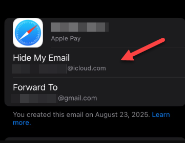 Tap Hide My Email (only visible if you are subscribed to iCloud+).
