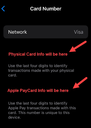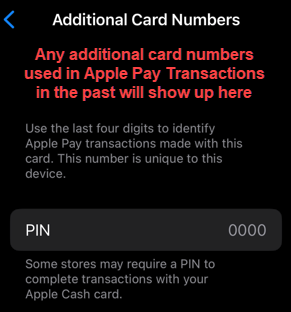 Apple Pay can update your Device Account Number over time. To see older numbers that might have been used in previous transactions, tap Additional Card Numbers.