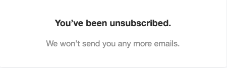 We won’t send you any more emails.” Once you see this message, your unsubscribe request has been successfully processed.